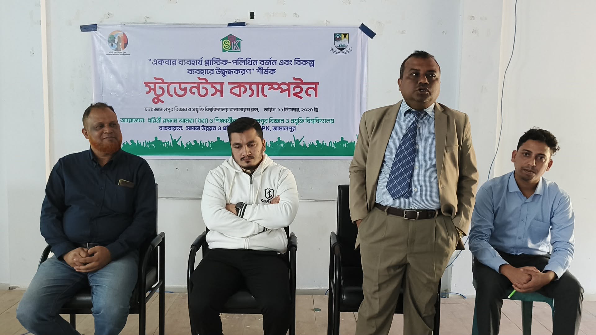 জামালপুর বিজ্ঞান ও প্রযুক্তি বিশ্ববিদ্যালয়ের শিক্ষার্থীদের উদ্যোগে একবার ব্যবহার্য প্লাস্টিকের ক্ষতিকর প্রভাব এবং পরিবেশবান্ধব বিকল্প ব্যবহারের উপর সচেতনতা বাড়াতে গ্রীন ভয়েস—জামালপুর বিজ্ঞান ও প্রযুক্তি বিশ্ববিদ্যালয় শাখা এর আয়োজনে বৃহস্পতিবারে বিশেষ ষ্টুডেন্ট ক্যাম্পেইন অনুষ্ঠিত হয়েছে ।