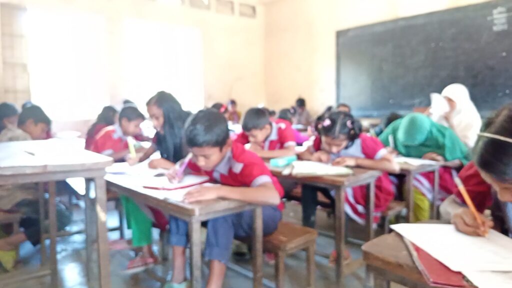 গত বুধবার বিদ্যালয়ে গিয়ে দেখা যায়, দুটি শ্রেণিকক্ষে তৃতীয় থেকে পঞ্চম শ্রেণির শিক্ষার্থীদের বার্ষিক পরীক্ষা চলছে। অল্প জায়গায় গাদাগাদি করে হলেও শিক্ষার্থীরা আগ্রহের সঙ্গে পরীক্ষায় অংশ নিচ্ছে। পরীক্ষা শেষে শিক্ষার্থীরা নতুন ও নিরাপদ বিদ্যালয় ভবন নির্মাণের জোর দাবি জানায়।