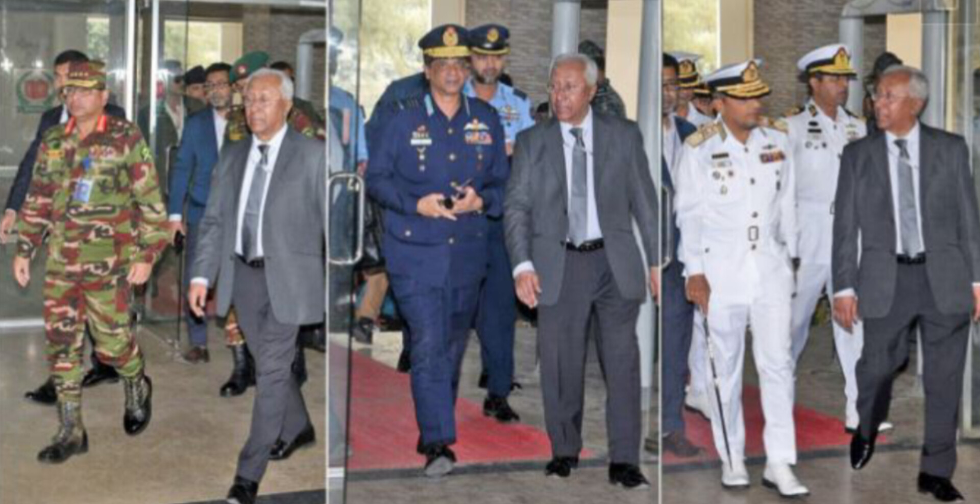 এর আগে তিন বাহিনী প্রধান নির্বাচন ভবনে পৌঁছালে ইসি সচিবালয়ের সিনিয়র সচিব আখতার আহমেদ পৃথকভাবে তাদের অভ্যর্থনা জানান।