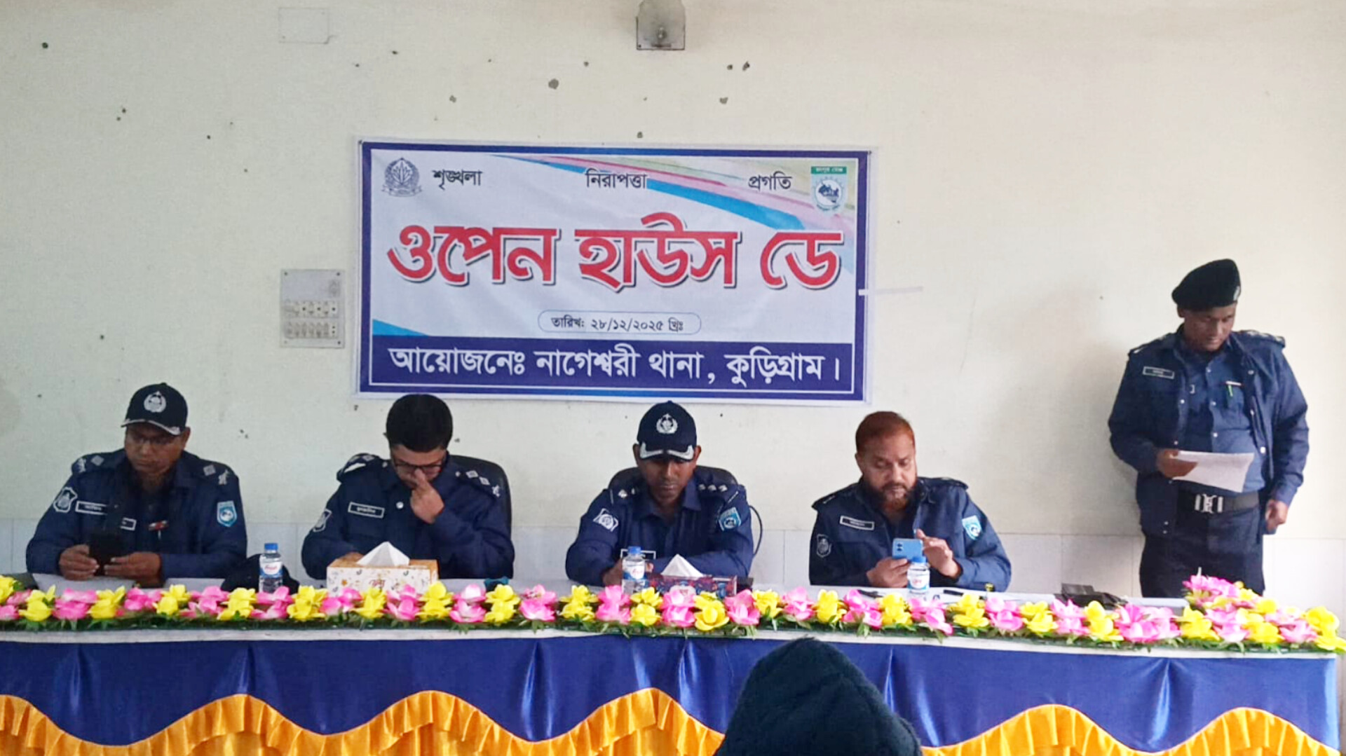 কুড়িগ্রামের নাগেশ্বরী থানার উদ্যোগে ২৮ ডিসেম্বর থানা কার্যালয়ে অনুষ্ঠিত হয়েছে ওপেন হাউজ ডে। অনুষ্ঠানে উপজেলা বিভিন্ন শ্রেণি-পেশার মানুষ, রাজনীতিবিদ ও গণ্যমান্য ব্যক্তিরা অংশগ্রহণ করেন এবং উন্মুক্ত আলোচনা সভায় স্থানীয় সমস্যাগুলো তুলে ধরেন।