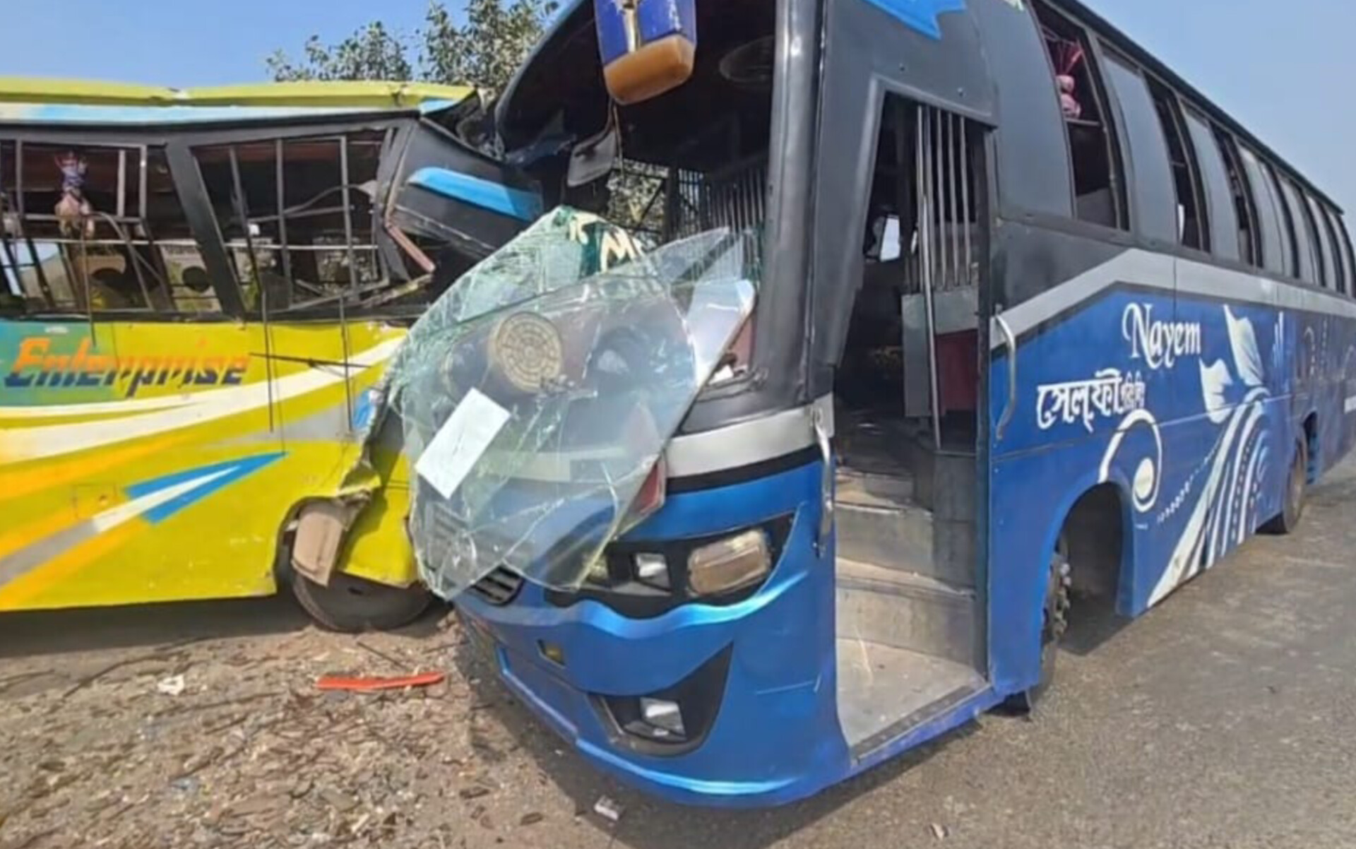 বানিয়াজুরীতে দুই যাত্রীবাহী বাসের মুখোমুখি সংঘর্ষ, আহত ২৫