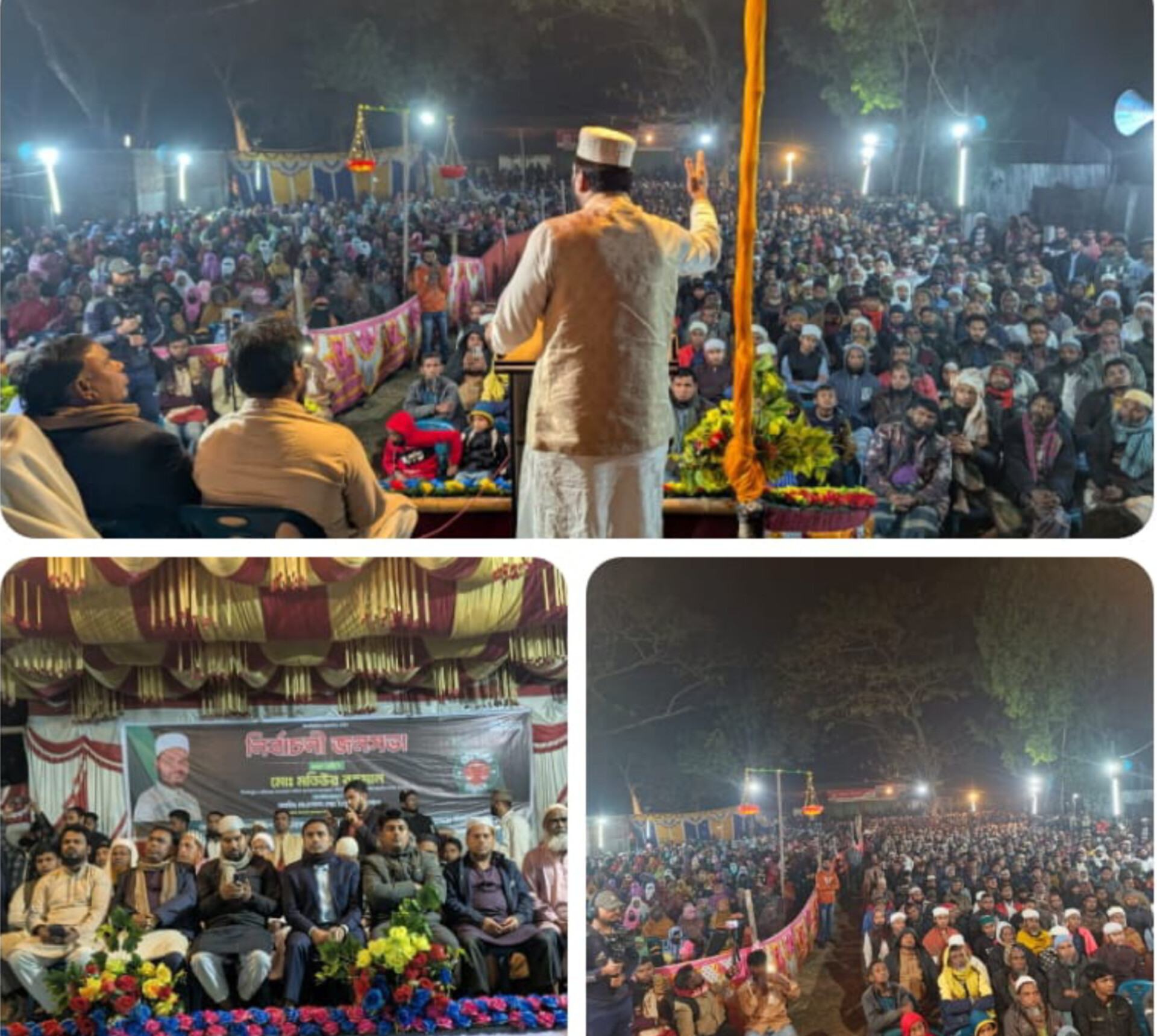 দিনাজপুরের বীরগঞ্জ উপজেলার ৩নং শতগ্রাম ইউনিয়নের ঝাড়বাড়ী বাজার ঈদগাহ মাঠে প্রায় ১০ হাজার মানুষের উপস্থিতিতে এক বিশাল নির্বাচনী জনসভা অনুষ্ঠিত হয়েছে। রোববার (১ ফেব্রুয়ারি ২০২৬) সন্ধ্যা ৬টায় এ জনসভার আয়োজন করা হয়।