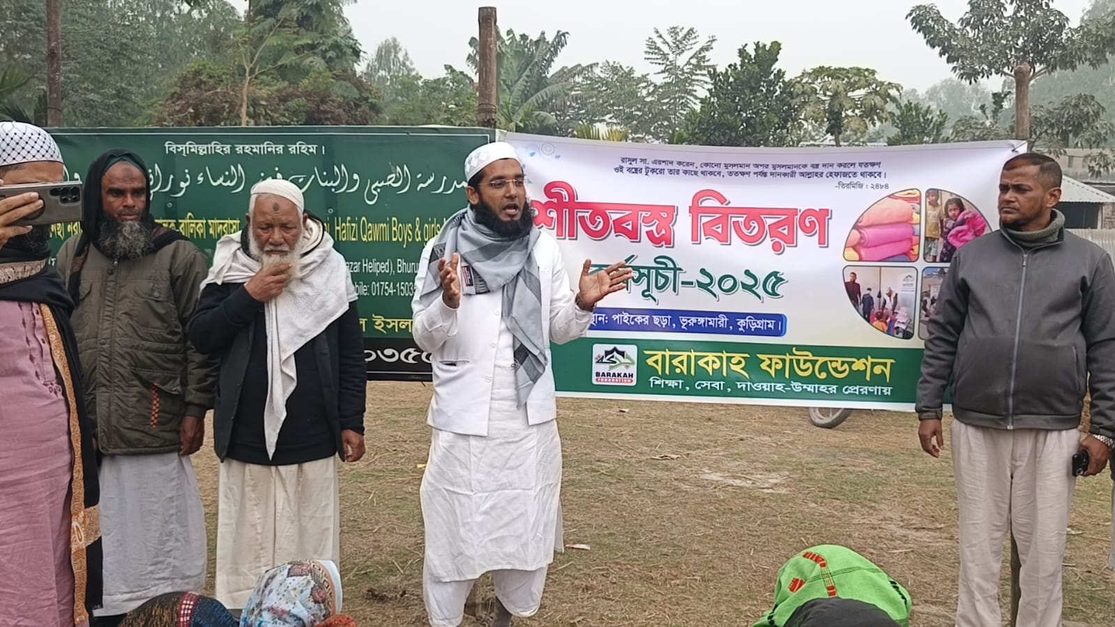 শীতের তীব্রতায় যখন উত্তরের জনপদে জীবন থমকে দাঁড়ায়, ঠিক তখনই মানবিক সহায়তার হাত বাড়িয়ে দিল শিক্ষা, সেবা ও দাওয়ায়ে উম্মাহর প্রেরণায় নিয়োজিত বারাকা ফাউন্ডেশন। হতদরিদ্র শিক্ষার্থী ও শীতার্ত মানুষের পাশে দাঁড়ানোর লক্ষ্যে “শীতবস্ত্র বিতরণ কর্মসূচি–২০২৫” এর অংশ হিসেবে ভুরুঙ্গামারীতে কম্বল বিতরণ করা হয়েছে।