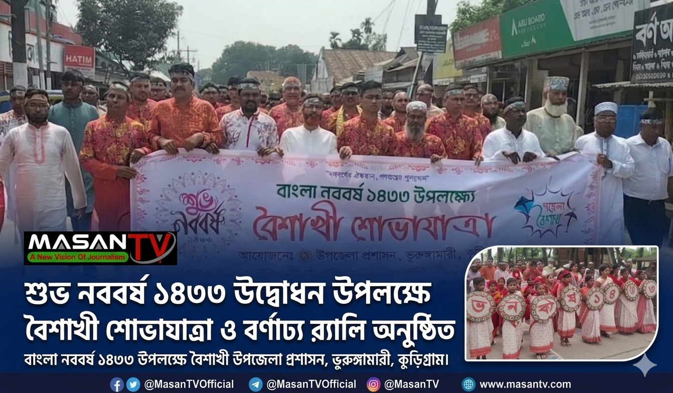 নববর্ষের ঐকতান, গণতন্ত্রের পুনরুত্থান প্রতিপাদ্যে বর্ণাঢ্য আয়োজনে কুড়িগ্রামের ভূরুঙ্গামারীতে পহেলা বৈশাখ উদযাপন করা হয়েছে। পহেলা বৈশাখ উদযাপন উপলক্ষে মঙ্গলবার সকালে উপজেলা পরিষদ চত্বর থেকে বর্ণিল শোভাযাত্রা বের হয়। শোভাযাত্রাটি উপজেলা শহরের বিভিন্ন সড়ক ঘুরে পুনরায় উপজেলা পরিষদ চত্বরে এসে শেষ হয়। পরে উপজেলা পরিষদ মুক্ত মঞ্চে জাতীয় ও বৈশাখী সঙ্গীত পরিবেশনের মাধ্যমে বৈশাখী অনুষ্ঠানে উদ্বোধন করা হয়। উপজেলা শিল্পকলা একাডেমির প্রাঙ্গণে পান্তা ও পিঠা উৎসবের আয়োজন করা হয়। এছাড়া উপজেলা পরিষদ মুক্ত মঞ্চের সাংস্কৃতিক অনুষ্ঠানের ভাওয়াইয়া ও লোক সঙ্গীত পরিবেশন করা হয়।