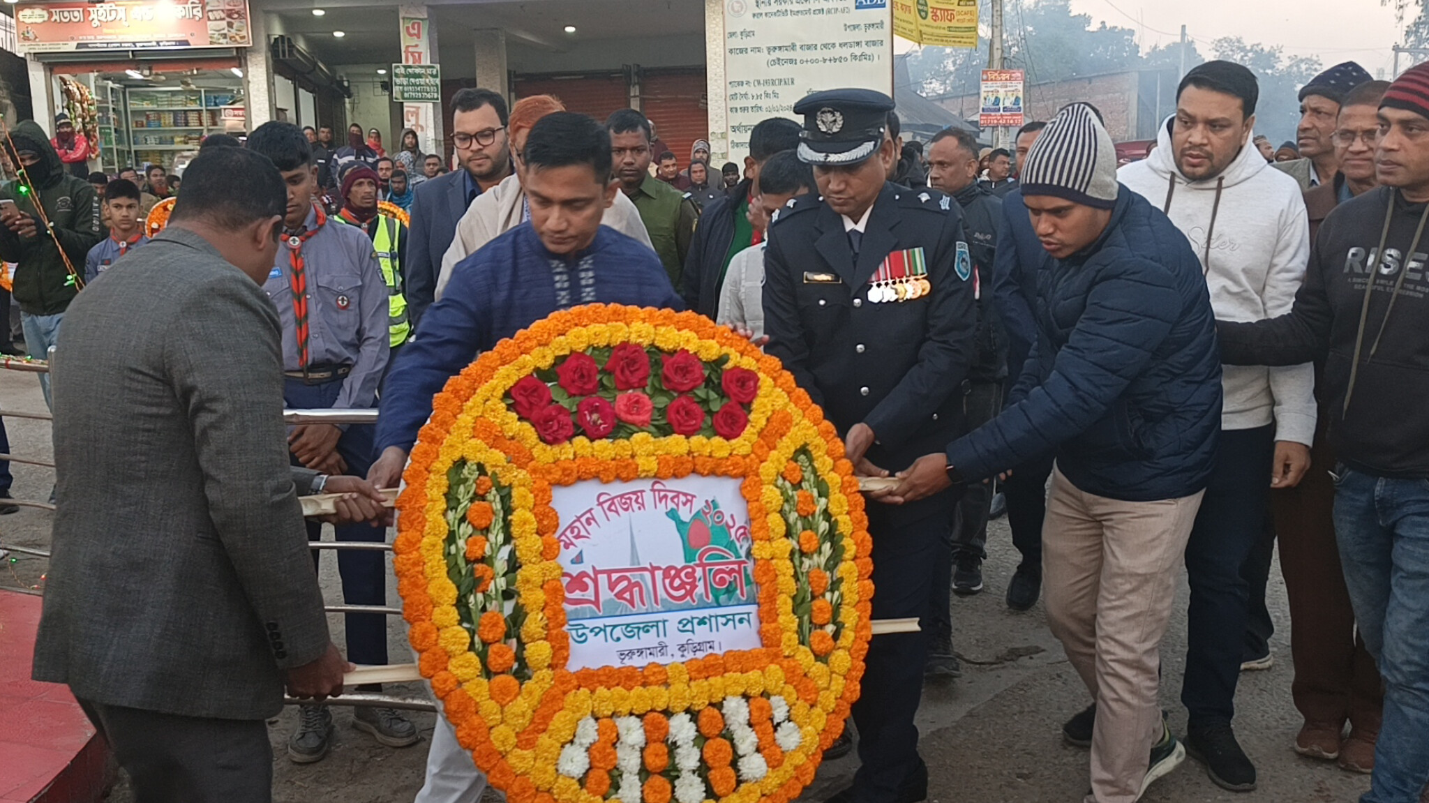 ভোরে ভূরুঙ্গামারী কেন্দ্রীয় বাসস্ট্যান্ডে অবস্থিত মুক্তিযুদ্ধ স্মৃতিস্তম্ভে উপজেলা প্রশাসন, মুক্তিযোদ্ধা সংসদ, বীর মুক্তিযোদ্ধাগণ, বিভিন্ন রাজনৈতিক দল, শিক্ষা প্রতিষ্ঠান, সামাজিক ও স্বেচ্ছাসেবী সংগঠনের পক্ষ থেকে পুষ্পস্তবক অর্পণ করা হয়। এ সময় মহান মুক্তিযুদ্ধে শহীদ বীর মুক্তিযোদ্ধাদের প্রতি গভীর শ্রদ্ধা জানানো হয়।
