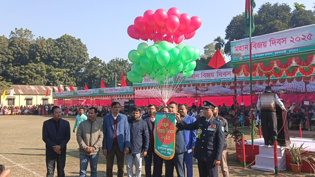 সকাল ৯টায় ভূরুঙ্গামারী পাইলট সরকারি উচ্চ বিদ্যালয় মাঠে আনুষ্ঠানিকভাবে জাতীয় পতাকা উত্তোলন করা হয়। একই সঙ্গে পায়রা ও বেলুন উড়িয়ে দিনব্যাপী কর্মসূচির উদ্বোধন করা হয়। এ সময় বীর মুক্তিযোদ্ধাদের ফুল দিয়ে সংবর্ধনা প্রদান করা হয় এবং যুদ্ধাহত ও শহীদ মুক্তিযোদ্ধা পরিবারের সদস্যদের বিশেষ সম্মাননা দেওয়া হয়।