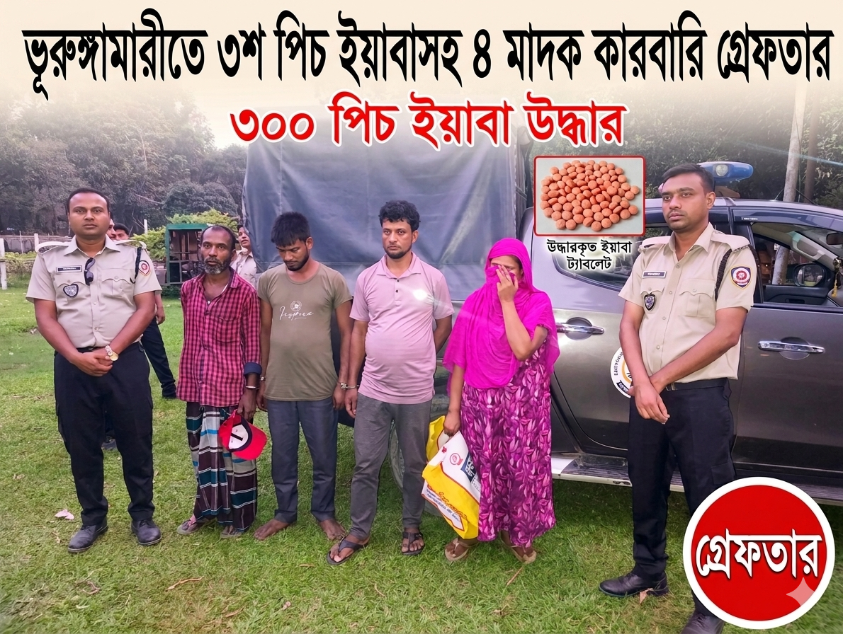 ভূরুঙ্গামারীতে ৩শ পিচ ইয়াবাসহ নারীসহ ৪ মাদক কারবারি গ্রেফতার