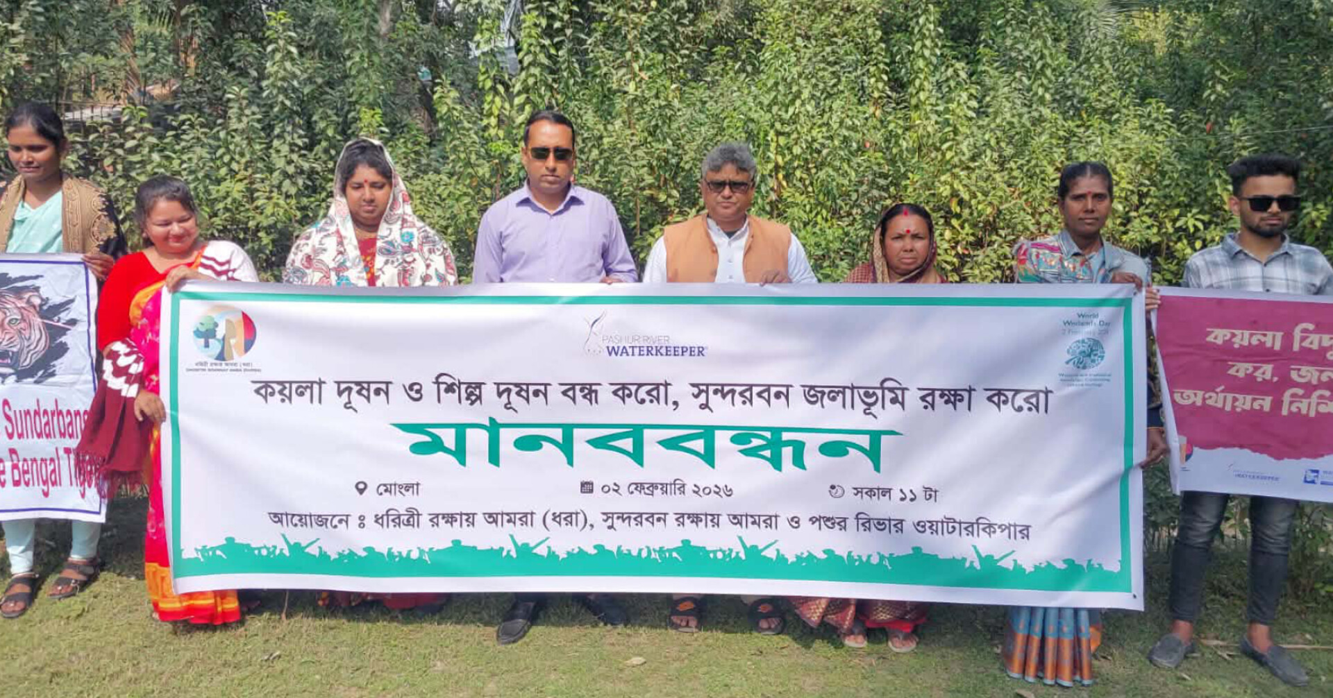 বিশ্ব জলাভূমি দিবস উপলক্ষে সোমবার (২ ফেব্রুয়ারি) সকালে মোংলা উপজেলার কাপালিরমেঠ গ্রামে আয়োজিত এক মানববন্ধনে এসব দাবি তুলে ধরা হয়। পরিবেশবাদী সংগঠন ধরিত্রী রক্ষায় আমরা (ধরা), সুন্দরবন রক্ষায় আমরা এবং পশুর রিভার ওয়াটারকিপার যৌথভাবে এ কর্মসূচির আয়োজন করে।