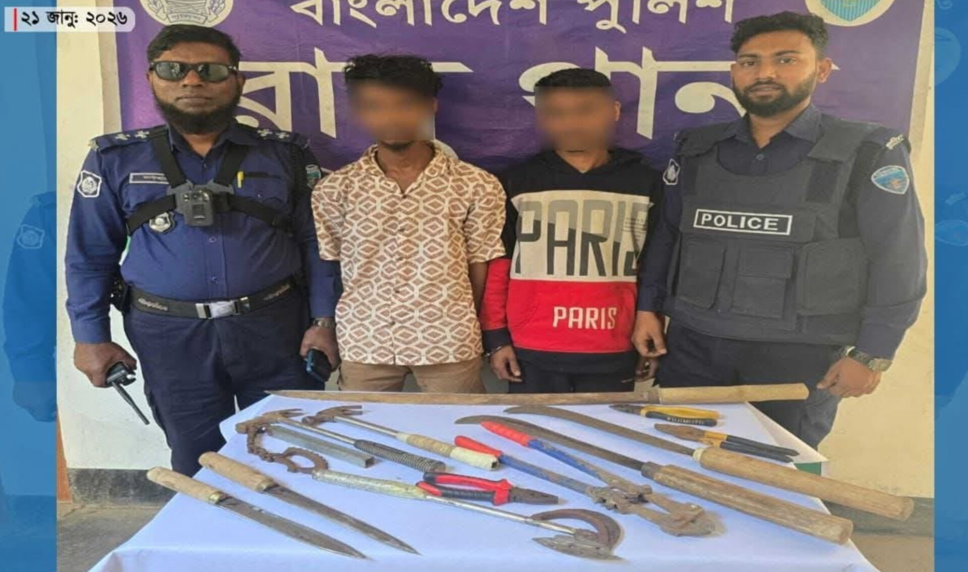 অভিযান শেষে ঘটনাস্থল থেকে ডাকাতদের ফেলে যাওয়া ১টি লম্বা কিরিচ, ২টি ছুরি, ২টি দা, ২টি লোহার হাতুড়ি, ১টি দুইমুখো চাইনিজ কুড়াল, ১টি তালা ও গ্রিল কাটার যন্ত্র, ৩টি প্লাস এবং ১টি চেইনযুক্ত লোহার বিশেষ যন্ত্র জব্দ করা হয়।