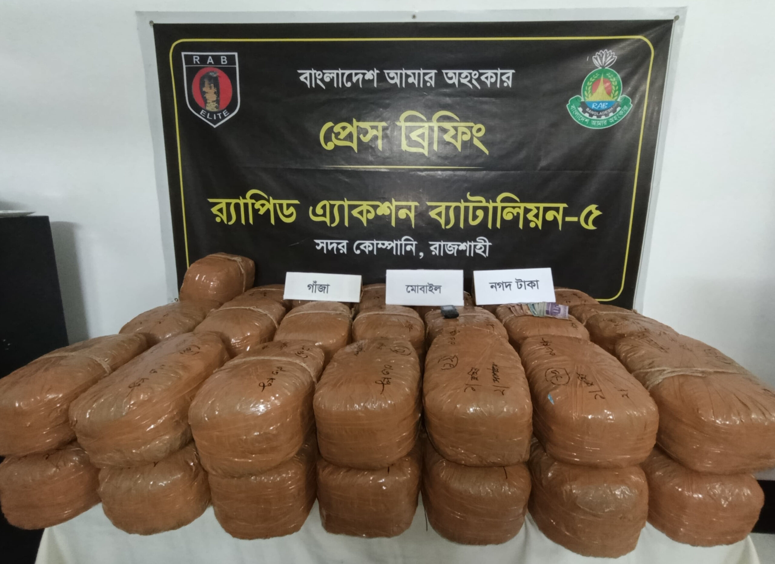 লবণ পরিবহনের আড়ালে গাঁজা পাচার: রাজশাহীতে র্যাবের অভিযানে অর্ধকোটি টাকার মাদকসহ গ্রেফতার ১