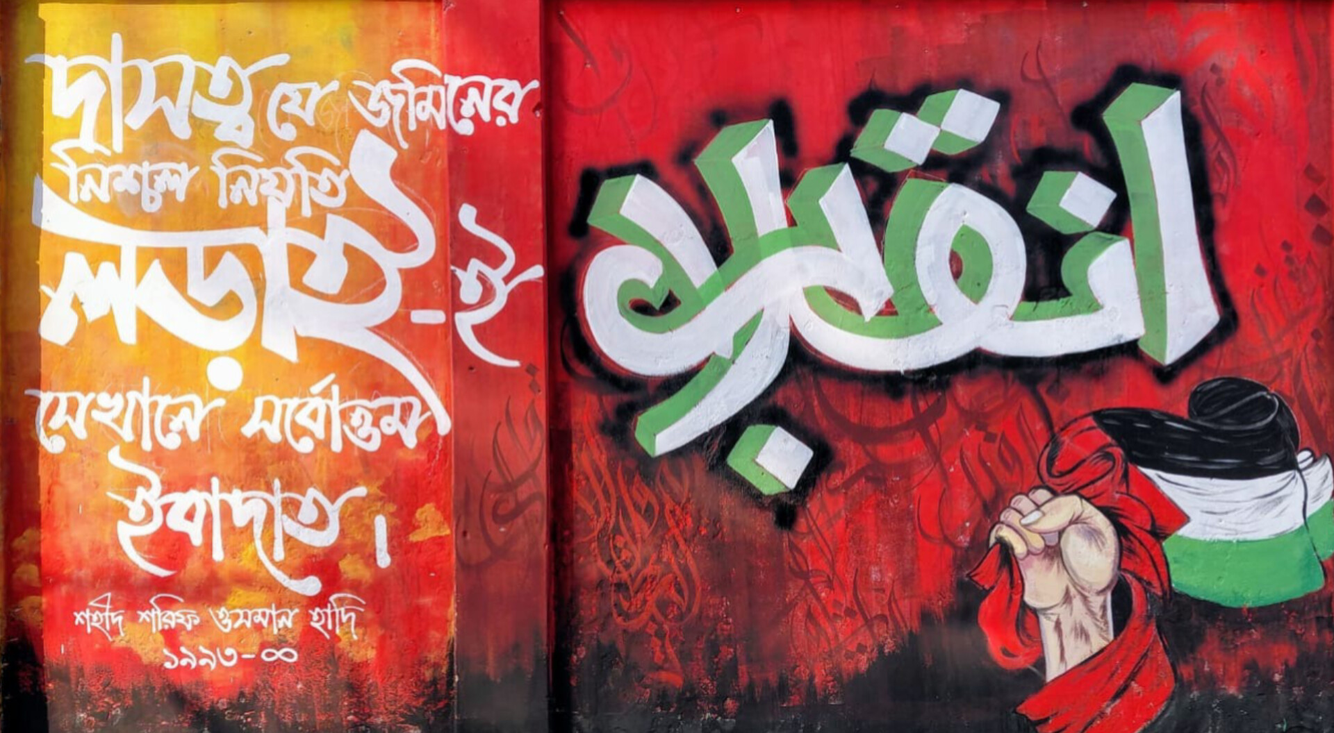 শহীদ ওসমান হাদির স্মরণে ঢাকা আলিয়ায় গ্ৰাফিতি অঙ্কন