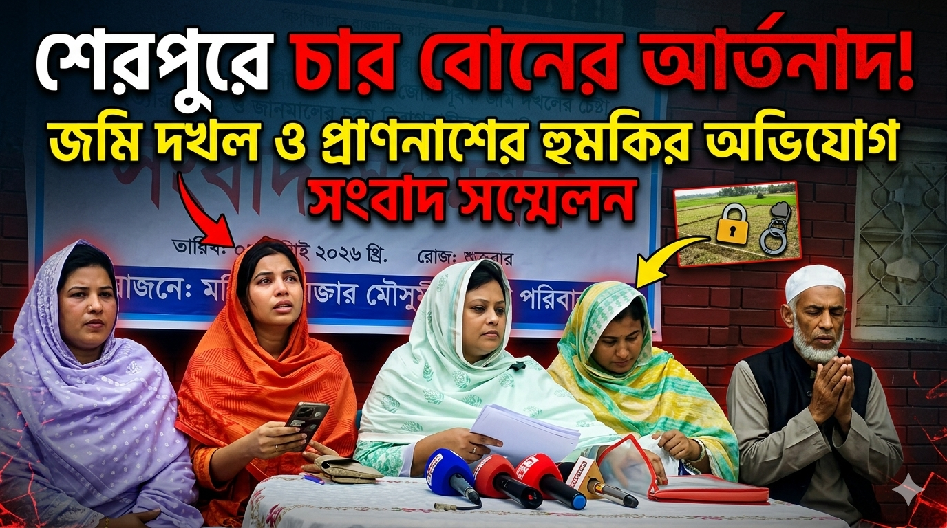 শেরপুরে চার বোনের আর্তনাদ: জমি দখল ও প্রাণনাশের হুমকির অভিযোগে সংবাদ সম্মেলন