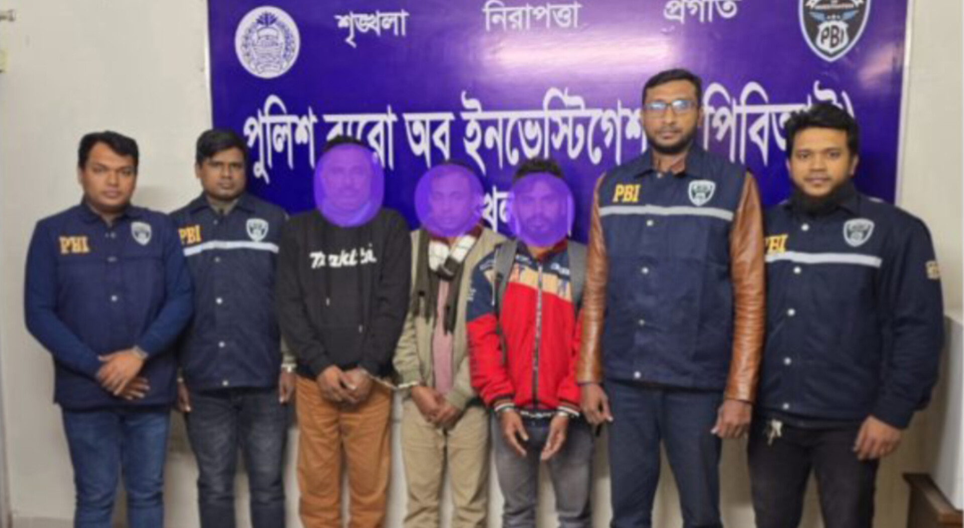 গ্রেপ্তারকৃতরা হলেন—গোপালগঞ্জের কাশিয়ানী উপজেলার একিন সরদারের ছেলে এসএম শাহিন (৫০), মাগুরার মোহাম্মদপুর উপজেলার মদন মোহনপুর এলাকার মোঃ নাজমুল হাসান (৩২) এবং একই থানার মোঃ লিয়াকত আলীর ছেলে ওবায়দুল বিশ্বাস (৩৪)।