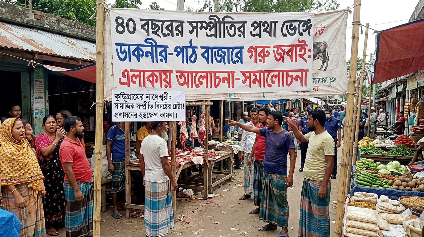 ৪০ বছরের সম্প্রীতির প্রথা ভেঙে কুড়িগ্রামের ডাকনীর-পাঠ বাজারে গরু জবাই, এলাকায় আলোচনা-সমালোচনা