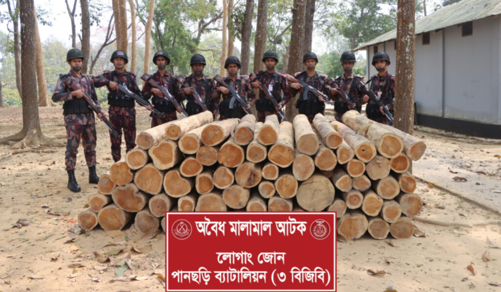 পানছড়িতে বিজিবি’র অভিযানে ৮৮ ঘনফুট অবৈধ সেগুন কাঠ জব্দ
