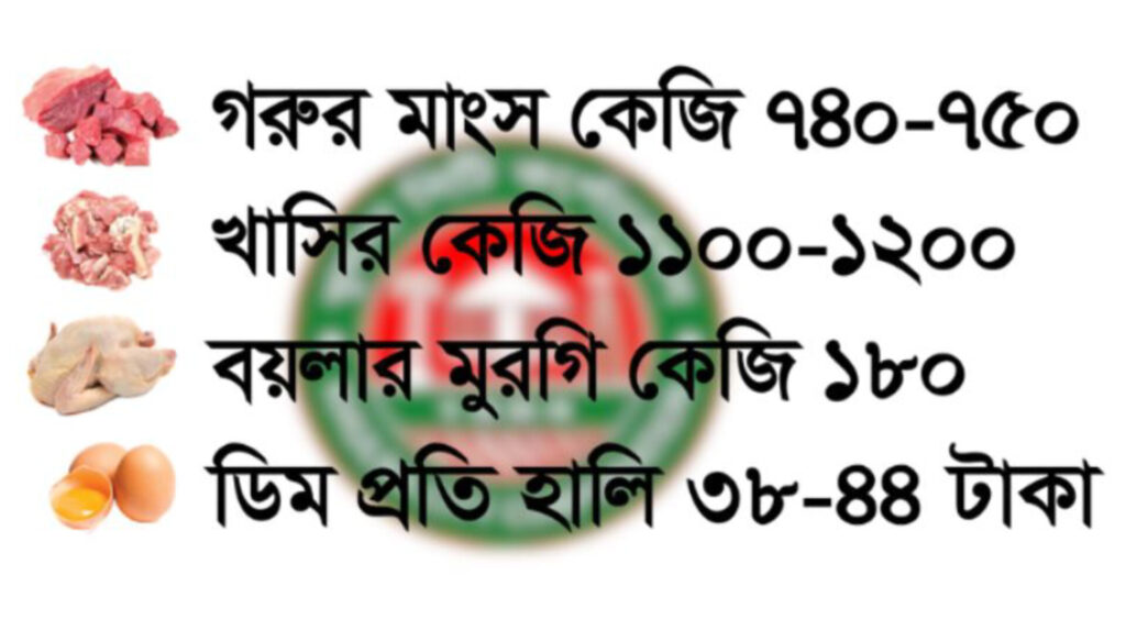 খুলনা প্রতিনিধিঃপবিত্র মাহে রমজানকে সামনে রেখে খুলনা মহানগরীতে গরু ও ছাগলের মাংস, ডিম ও বয়লার মুরগির খুচরা বিক্রয়মূল্য নির্ধারণ করেছে খুলনা সিটি করপোরেশন (কেসিসি)। বুধবার বিকেলে নগর ভবনের শহিদ আলতাফ মিলনায়তনে ব্যবসায়ী নেতাদের সঙ্গে মতবিনিময় সভায় এ সিদ্ধান্ত গৃহীত হয়।সভায় নির্ধারিত মূল্য অনুযায়ী, প্রতি কেজি খাসির মাংস ১১০০ থেকে ১২০০ টাকা, গরুর মাংস ৭৪০ থেকে […]