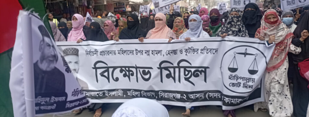 সিরাজগঞ্জে নারী নির্যাতন ও প্রচার কাজে বাধার প্রতিবাদে মহিলা জামায়াতের বিক্ষোভ মিছিল